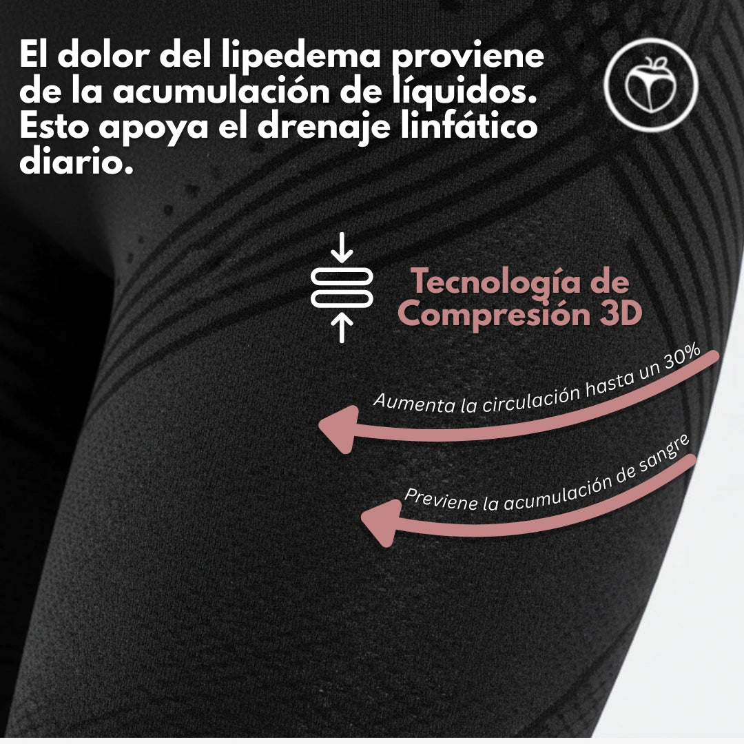 Esta presión suave y graduada mejora el flujo sanguíneo y linfático hasta en un 30% , lo que ayuda a reducir la hinchazón, el dolor y la acumulación de líquido , las principales causas del malestar del lipoedema.