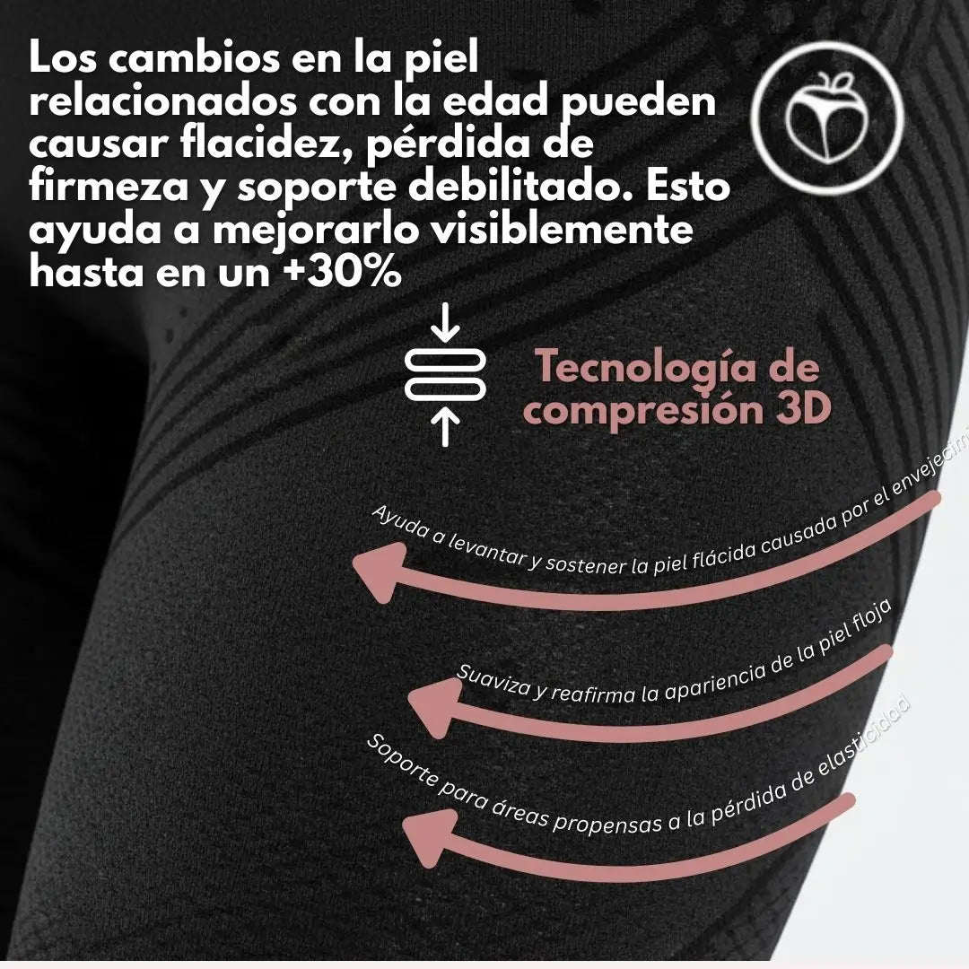 - Efecto 3 en 1: reafirma la piel flácida, levanta los glúteos y tonifica los muslos, sin cirugía ni tratamientos costosos.